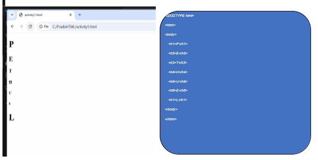 Print your name to the screen with every letter being a different heading size.