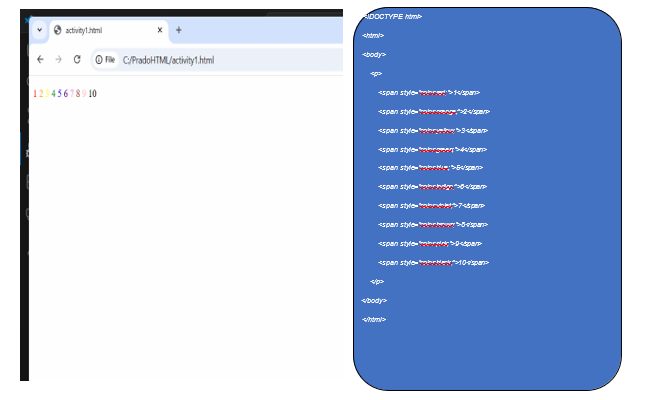 Print the numbers 1 – 10, each number being a different color.