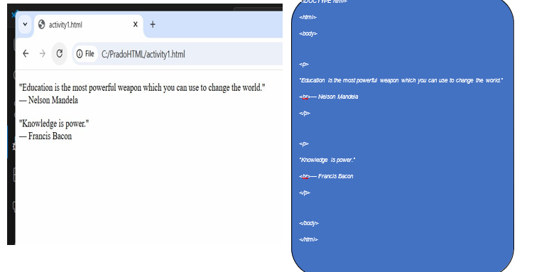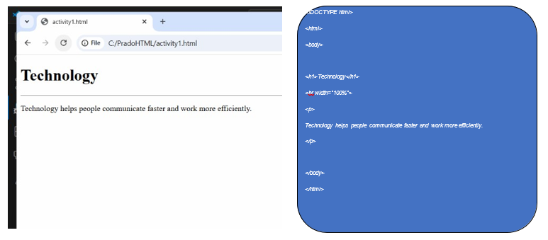 Prints an h1 level heading followed by a horizontal line whose width is 100%. Below the horizontal line print a paragraph relating to the text in the heading.