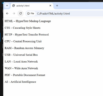 Print ten acronyms and abbreviations of your choosing, each separated by two lines. Specify the data that the abbreviations and acronyms represent.
