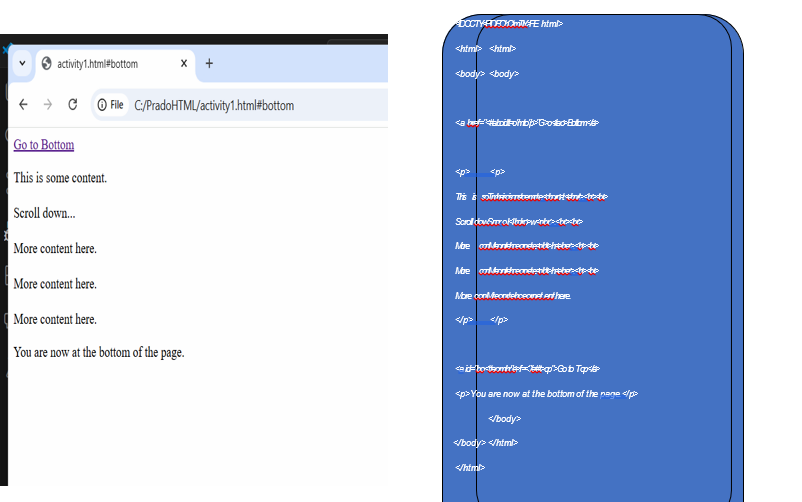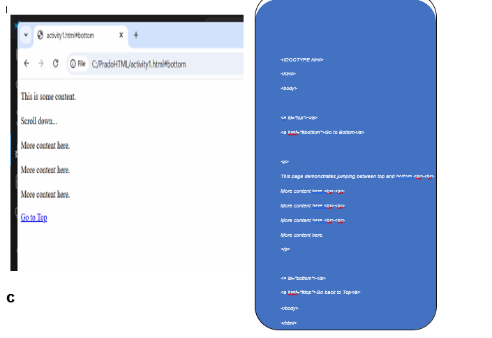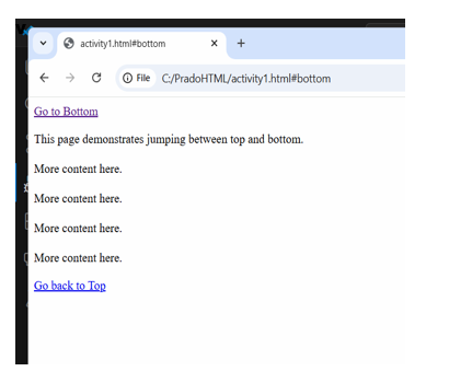 Create a page with a link at the top of it that when clicked will jump all the way to the bottom of the page. At the bottom of the page there should be a link to jump back to the top of the page.